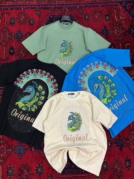تیشرت گلدوزی طرح طاووس
