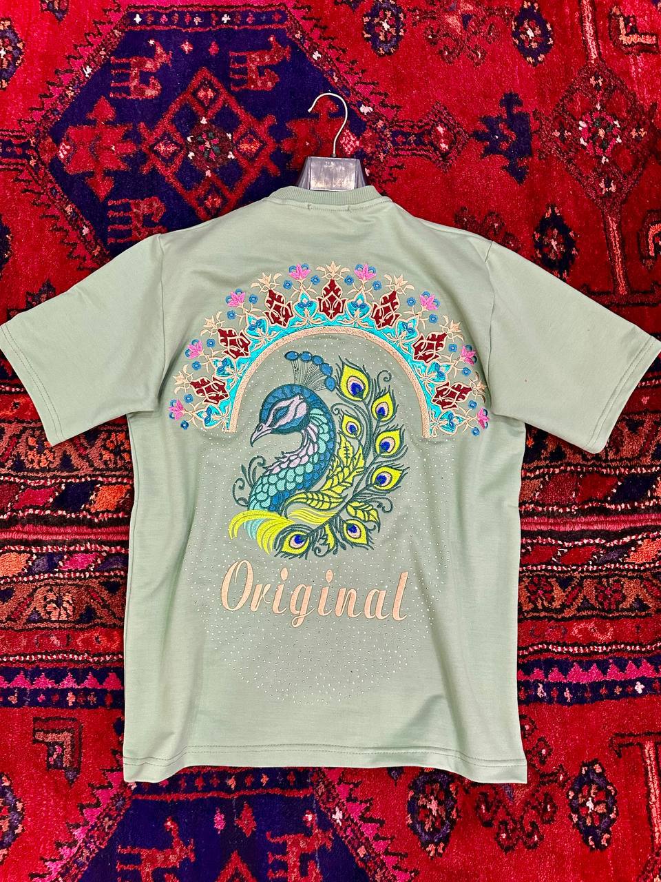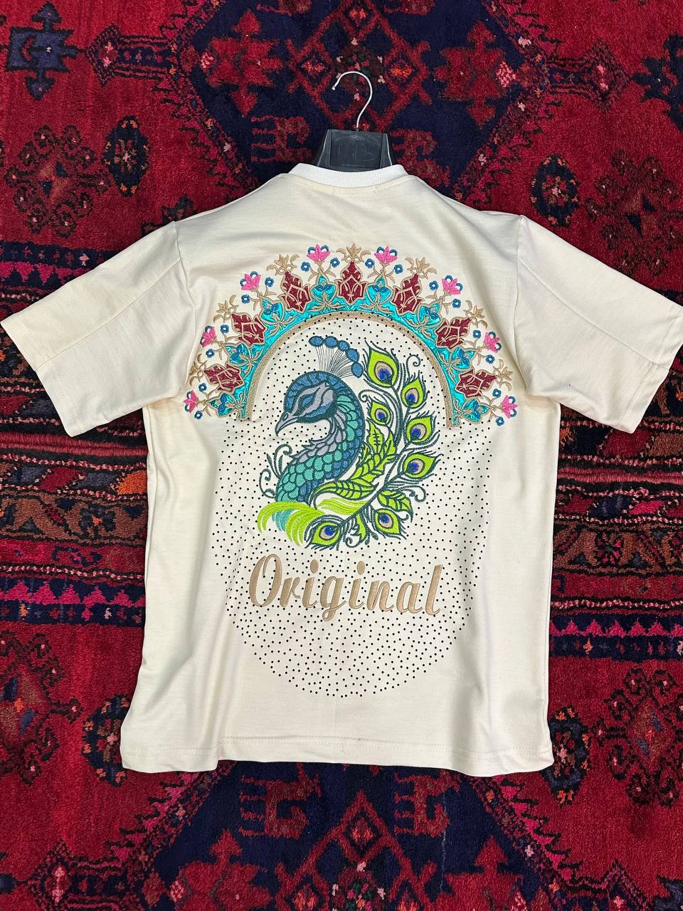 تیشرت گلدوزی طرح طاووس